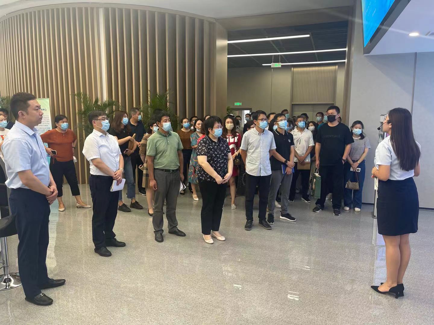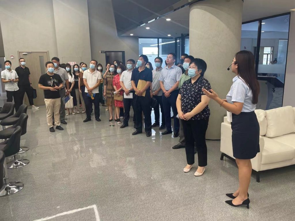 8月24日下午,市北区人社局局长王萍一行等70余人到RCEP青岛企业服务中心开展主题党日活动。现场参观了服务中心的企业服务岛、集中办公区、国际人才洽谈室等区域,工作人员耐心细致地讲解了企业服务中心的建设背景、特色窗口服务、工作成果及长期发展规划。随后,由青岛红景四方产业发展集团有限公司总经理、产业发展专班副主任王轲同志就RCEP青岛经贸合作先行创新试验基地建设情况为参观人员进行RCEP试验基地专题培训。