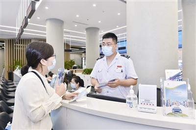 该中心还设立了自助办税区,市北区税务局工作人员向前来办理业务的企业演示了如何通过电子税务局进行网上办理。