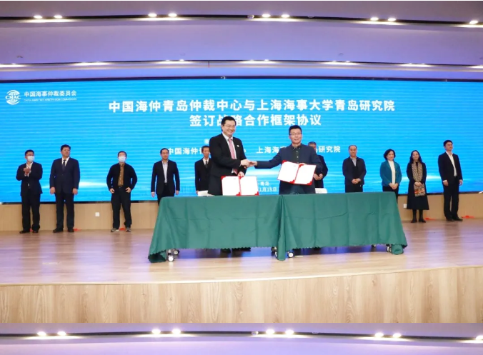 在揭牌领导见证下,中国海仲青岛仲裁中心副秘书长黄晨亮代表中国海仲青岛仲裁中心分别与上海海事大学青岛研究院、青岛市律师协会签署战略合作框架协议。