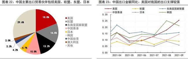细分产品来看,杂项制品、塑料及其制品、橡胶及其制品、贱金属及其制品、光学、医疗等仪器;钟表;乐器、纺织原料及纺织制品、机电、音像设备及其零件、附件等的增速回升速度较高,车辆、航空器、船舶及运输设备增速有所放缓但仍处于较高水平。