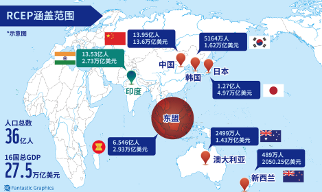 区域全面经济伙伴关系协定(RCEP)将于2022年1月1日开始生效。RCEP的15个成员国包括东盟十国,以及中国、日本、韩国、澳大利亚、新西兰,其总人口、经济体量、贸易总额均占全球总量约30%。因此,RCEP也被誉为“世界最大自贸区”。