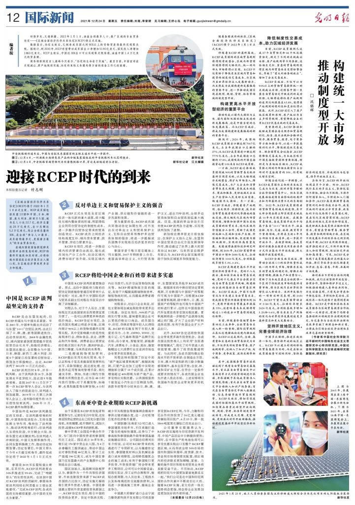 时值岁末,又逢新篇。2022年1月1日,涵盖全球最多人口、最广区域的自由贸易协定——《区域全面经济伙伴关系协定》(RCEP)将正式实施。