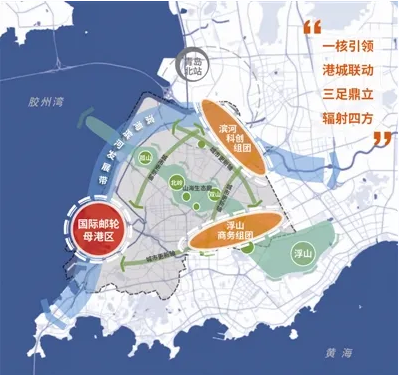 RCEP 签署仅15天——市北区争取国家部委、省、市支持,获批建设RCEP青岛经贸合作先行创新试验基地,在34.2平方公里内规划以青岛国际邮轮港区为核心区、滨海和沿河岸线为两廊、历史城区和4个千亩产业集聚区为协同区的“一核两廊五片区”整体布局。