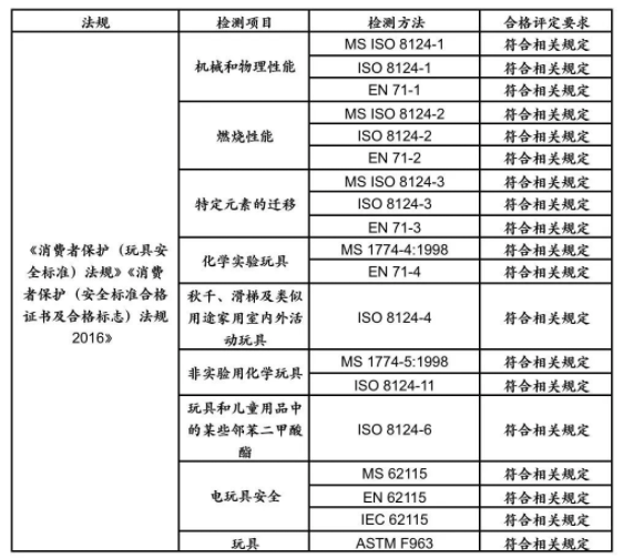 1.《消费者保护(玩具安全标准)(修正案)法规2016》规定进入马来西亚市场的玩具产品应符合本法规规定的玩具安全标准。