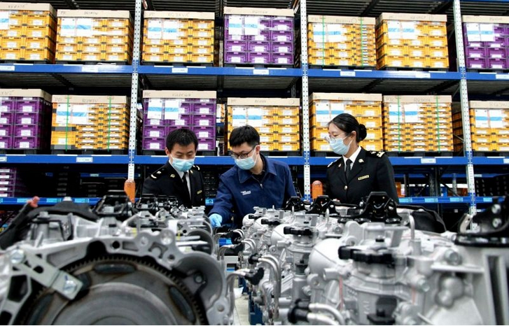 关员在发动机企业开展原产地调研 宋歌/摄