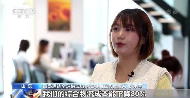 青岛通达全球供应链跨境电商业务负责人 耿萍萍:快线通航以后,我们的综合物流成本能下降80%。