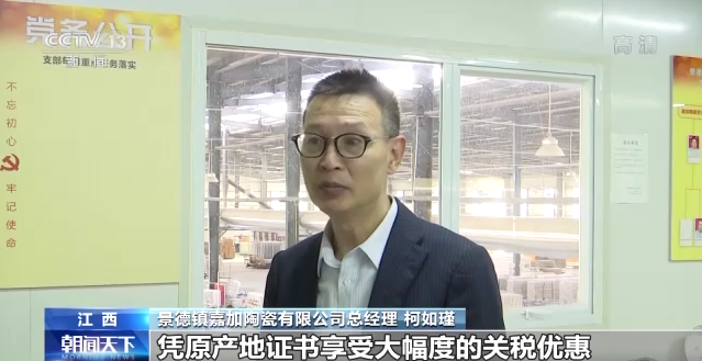 景德镇嘉加陶瓷有限公司总经理 柯如瑾:我们的陶瓷出口以日本市场为主,RCEP生效后,凭原产地证书享受大幅度的关税优惠,这样为我们的产品增加价格优势,对我们扩大日本市场有很大的帮助。