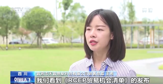 四川宜宾市天宜锂业科创有限公司销售总监 王希:我们看到《RCEP贸易机会清单》的发布,发现我们公司的主营产品,电池级氢氧化锂,除了出口到韩国以外,同时出口到日本和新加坡等其他的RCEP成员国,也享受零关税政策,我们立即意识到,这对我们开发海外市场是一个非常好的机会。