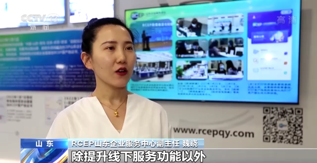 RCEP山东企业服务中心副主任 魏晓:除提升线下服务功能以外,我们特别开发了RCEP外贸实务查询系统,它集税费对比查询、RCEP原产地规则查询、RCEP原产国认定等功能于一体,帮助企业用好RCEP规则,开拓海外市场。