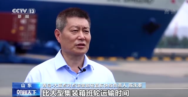 青岛—大阪点对点滚装班轮直航快线负责人 陈永泰:比大型集装箱班轮运输时间缩短了至少一半,下一步会提升到每周两个航次,实现运力翻倍。