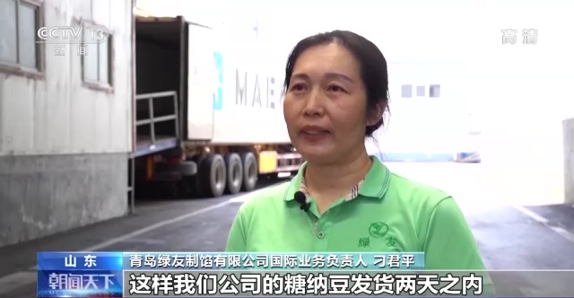 青岛绿友制馅有限公司国际业务负责人 刁君平:这样我们公司的糖纳豆发货两天之内就能交到日本客户手里。