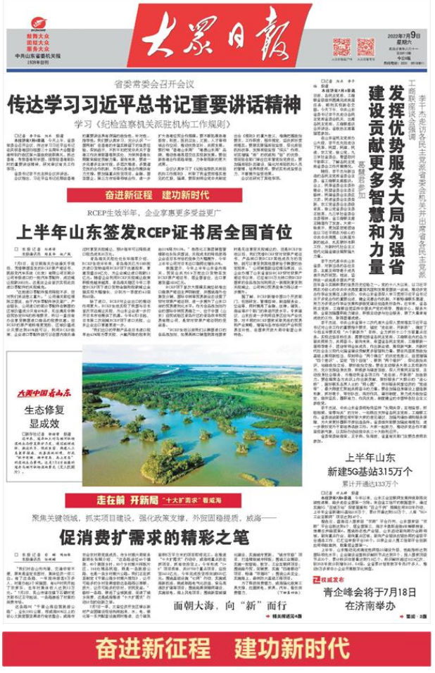 数据显示,今年上半年山东省内海关、贸促会共为5.9万批出口货物签发RCEP原产地证书,居全国首位,出口享惠货值183.9亿元。