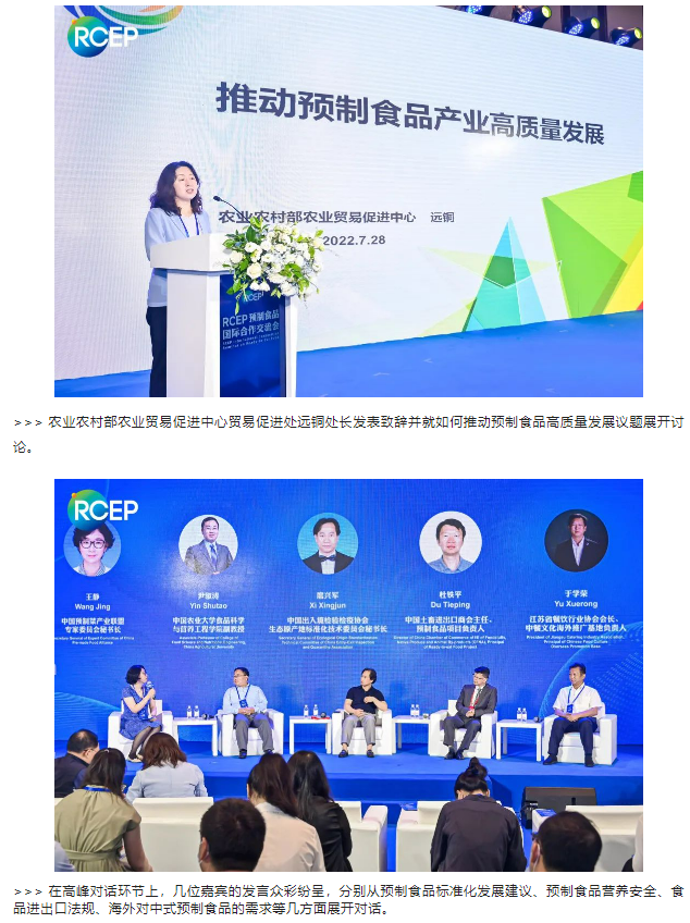 1.RCEP预制食品国际合作交流会上,与会嘉宾分享了RCEP规则下预制食品产业加强国际合作,推动专业化、标准化、国际化发展,优化产业链布局等权威观点和趋势预判。