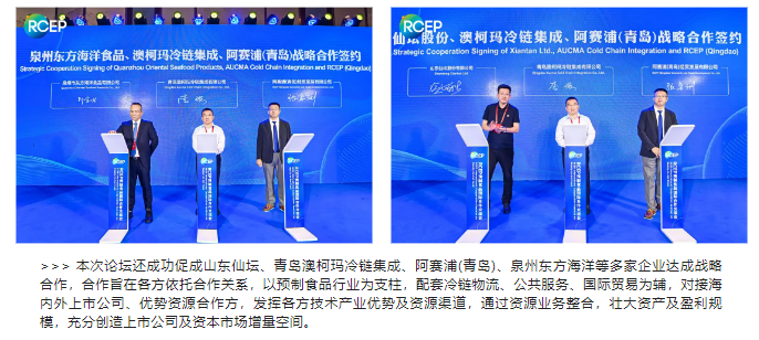 3.切实推动RCEP落地。会上,阿塞浦投资发展集团与澳柯玛、青岛仙坛、泉州东方等机构签订了合作协议,并宣布成立RCEP集采易货中心,让更多企业享受政策红利。
