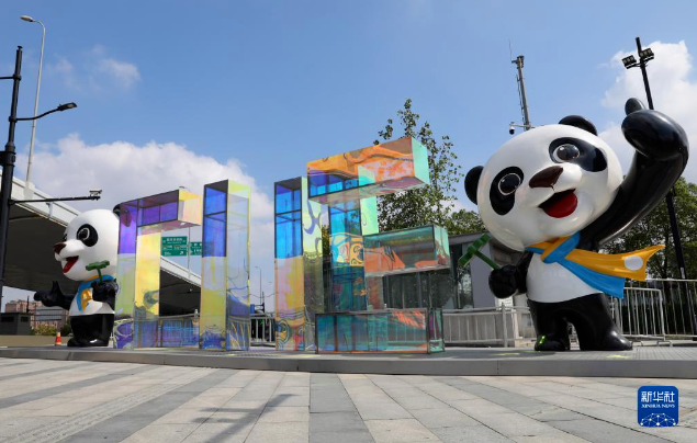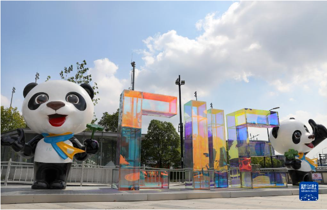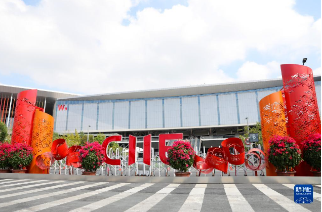 位于上海青浦区的国家会展中心(上海)场馆外部装饰工作正在进行中,迎接将于11月5日开幕的第五届中国国际进口博览会。