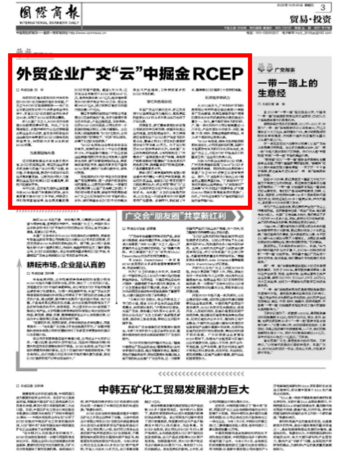 “RCEP生效给企业带来实实在在的惠利,直接促成企业上半年业务量提升13%,市场竞争力增强。”广交会参展企业南通炜赋对外贸易公司负责人潘建欣也表示,接下来要坚持做好主业,积极抢抓自贸区市场,继续向更多客户宣传RCEP政策,推动产业朝向数字化、绿色化发展。