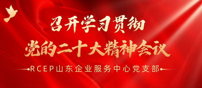 10月28日上午,RCEP山东企业服务中心党支部召开学习贯彻党的二十大精神会议,RCEP山东企业服务中心全体工作人员、青岛大港海关原产地管理科党支部、市北区税务局税源管理一科党支部、阿赛浦集团工作人员参加会议,会上,党支部传达学习了党的二十大、二十届一中全会精神,区委、区政府有关文件精神、介绍了市北区区情以及招商推介项目,并围绕争创RCEP山东经贸合作示范区、提升RCEP山东企业服务中心整体功能,海关、税务、人社、公证、行政审批、建投集团、中国银行、邮政、阿赛浦集团代表作了交流发言,同时印制了党的二十大报告、党章修正案等材料供大家会后再自学。