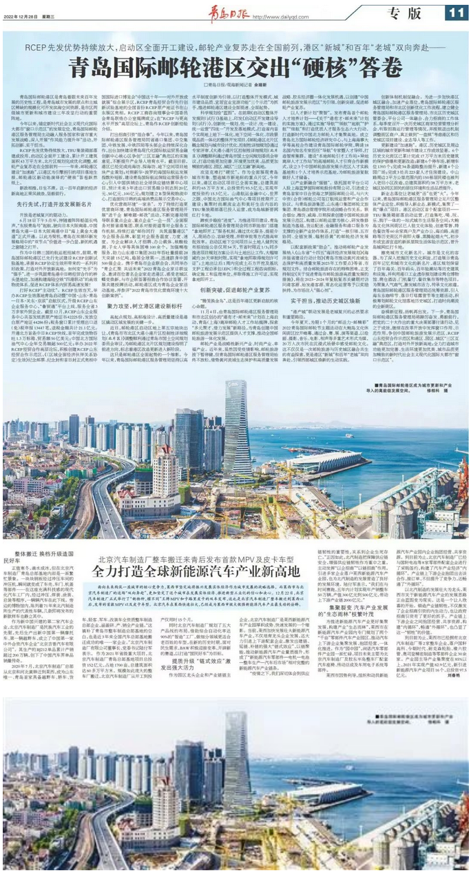 作为中日韩三国的航运枢纽城市,前期,青岛国际邮轮港区已先行先试建设RCEP创新试验基地,承接RCEP协定生效所带来的一系列利好政策,打造对外开放新高地。如何变“先手”为“强手”,进一步巩固青岛港中日韩经贸合作的桥头堡地位,加速构建海陆空铁“四港联动”的高效物流体系,促进RCEP体系内贸易高速发展?