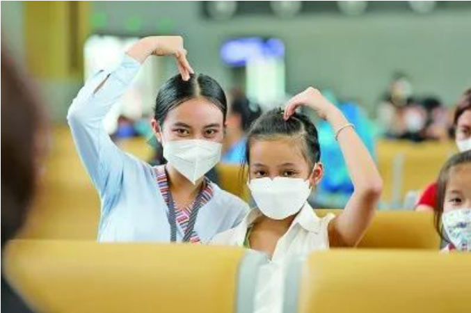 2022年4月24日,在老挝琅勃拉邦,中老铁路员工与小乘客合影。新华社发