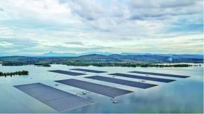 中泰合作水上光伏项目助力泰国迈向低碳社会。图为2022年12月8日在泰国乌汶府诗琳通水库拍摄的浮体光伏项目。 新华社发