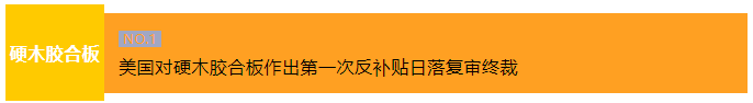 2023年3月6日,美国商务部发布公告称,对进口自中国的硬木胶合板(Hardwood Plywood)作出第一次反补贴快速日落复审终裁,裁定若取消本案的反补贴税,将导致中国涉案产品的补贴以22.98%~194.90的补贴率继续或再度发生。