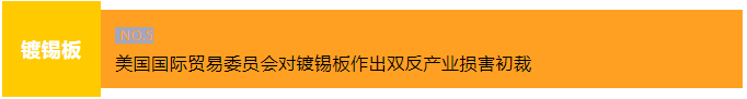 美国国际贸易委员会(ITC)投票对进口自中国、加拿大、德国、韩国、荷兰、中国台湾地区、土耳其和英国的镀锡板(Tin Mill Products)作出反倾销产业损害初裁、对进口自中国的镀锡板作出反补贴产业损害初裁,裁定被主张存在政府补贴和倾销行为的涉案产品对美国国内产业造成了实质性损害。在该项裁定中,5名委员均投肯定票。基于美国国际贸易委员会的肯定性裁定,美国商务部预计将于2023年4月13日前作出反补贴初裁,2023年6月27日前作出反倾销初裁。本案涉及美国协调关税税号7210.11.0000、7210.12.0000、7210.50.0020、7210.50.0090、7210.50.0000、7212.10.0000、7212.50.0000、7225.99.0090和7226.99.0180项下的产品。