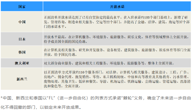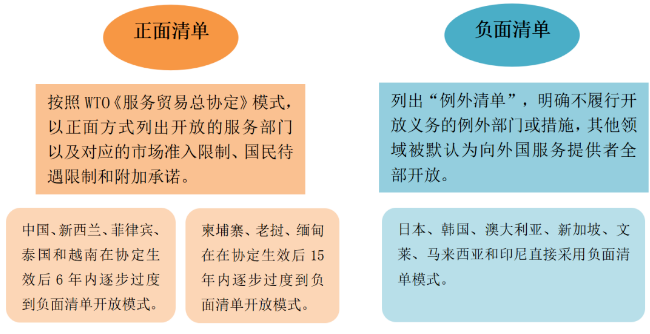 服务贸易开放模式分为正面清单和负面清单。RCEP15方均做出了高于WTO以及各自原有“10+1”自贸协定水平的开放承诺。除老挝、柬埔寨、缅甸之外,其他东盟成员在RCEP中承诺的服务部门数量均增加到100个以上。