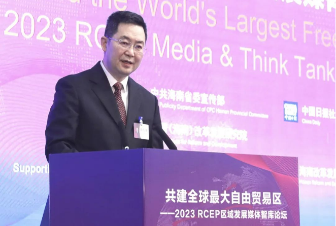 在这一背景下,5月21日,中共海南省委宣传部、中国日报社、中国(海南)改革发展研究院在海口共同主办“共建全球最大自由贸易区——2023 RCEP区域发展媒体智库论坛”。来自中国、韩国、日本、新加坡、菲律宾、老挝、缅甸、柬埔寨、马来西亚、印度尼西亚、澳大利亚、英国等国家的主流媒体、智库人士以及国际组织、驻华使馆官员和企业界共450余位代表参加本次论坛,共同围绕“共建全球最大自由贸易区”分享观点、交流思想,为推动区域交流合作积极建言献策。