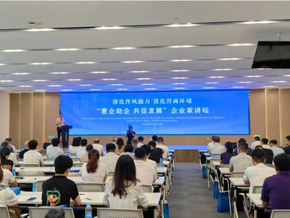 为深入贯彻落实青岛市“深化作风能力优化营商环境”专项行动部署,持续锻造市场化、法治化、国际化一流营商环境,助推邮轮港区加快打造现代化国际大都市“窗口示范区”,7月29日上午,“深化作风能力 优化营商环境——惠企助企共促发展”企业家讲坛活动在青岛新金融产业园隆重举行。该活动由市企业联合会、市企业家协会、市金融业联合会、青岛国际邮轮港区服务管理局、市行政审批服务局、青岛仲裁委员会、市社会保险事业中心共同主办,市广播电视台、青岛国际邮轮港区服务管理局企业服务部联合承办。