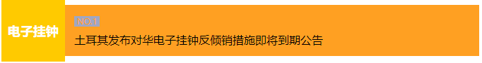 2023年7月20日,土耳其贸易部发布第2023/21号公告称,原产于中国电子挂钟的反倾销税将于2024年5月23日到期,利益相关方可提起日落复审申请。涉案产品的土耳其税号为9105.21.00.00.00。