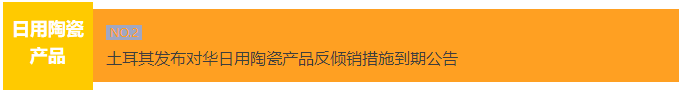 2023年7月20日,土耳其贸易部发布第2023/21号公告称,原产于中国的日用陶瓷产品反倾销税已于2023年3月3日到期。涉案产品的土耳其税号为6911.10.00.00.11、6911.10 .00.00.12、6911.10.00.00.19、6912.00.21.00.00、6912.00.23.00.00、6912.00.25.00.11、6912.00.25.00.12、6912.00.25.00.19 和6912.00.29.00.00。