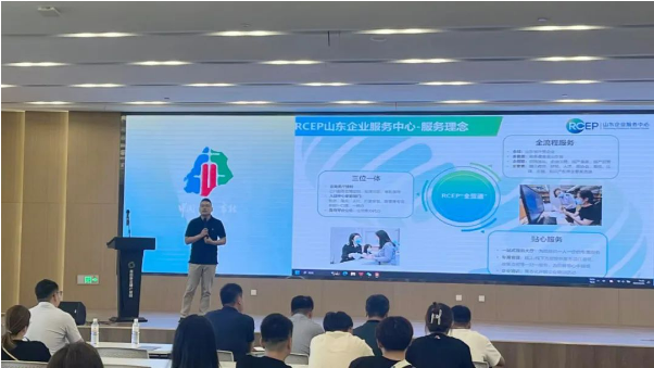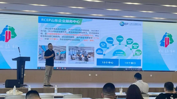 会上,RCEP山东企业服务中心市场运营总监郑云生为企业作RCEP政策宣讲,帮助企业利用RCEP的降税利好降低出口成本,为企业解决对政策吃不透、吃不准,用不活、用不足的问题。