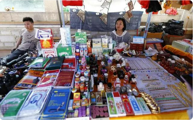 5月18日,商家在广西东兴售卖东南亚生产的商品。新华社记者 胡星宇 摄