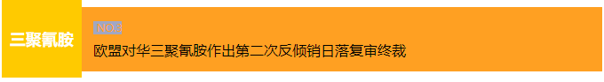2023年9月15日,欧盟委员会发布公告称,对原产于中国的三聚氰胺(Melamine)作出第二次反倾销日落复审终裁,裁定若取消反倾销措施,涉案产品的倾销对欧盟产业的损害会继续或再度发生,因此决定继续对中国三家出口商/生产商以最低限价实施反倾销措施,对中国其他出口商/生产商继续征收415欧元/吨反倾销税,反倾销税具体征收情况详见附表。涉案产品欧盟CN(Combined Nomenclature)编码为2933 61 00。本案调查期为2021年7月1日~2022年6月30日,损害调查期为2019年1月1日至调查期结束。公告自发布次日起生效。