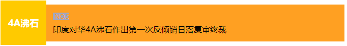 2023年9月14日,印度商工部发布公告,对原产于或进口自中国的4A沸石(Synthetic Grade zeolite 4A)作出第一次反倾销日落复审肯定性终裁,建议继续对中国的涉案产品征收为期5年的反倾销税,税额为163.90~207.72美元/公吨,其中生产商/出口商Chalco Zibo International Trading Co. Ltd  (CZITCL)(中铝淄博国际贸易有限公司)为163.90美元/公吨,中国其他生产商/出口商为207.72美元/公吨。本案涉及印度海关编码38249922、38249090、38249990、28429090、28269000、28399090和28421000项下的产品。