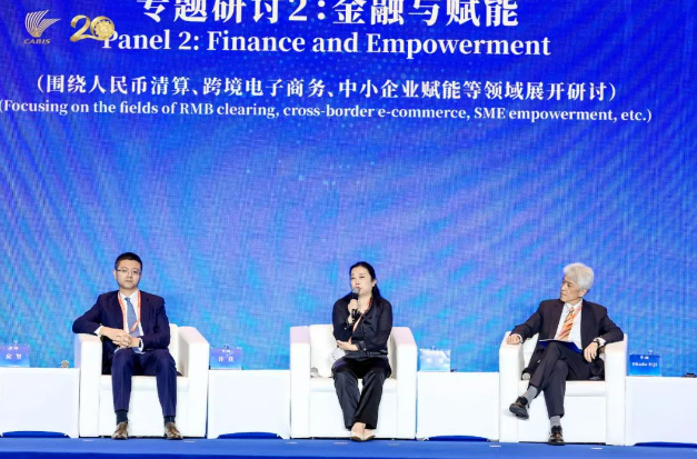 中国银行(香港)有限公司资深策略规划师应坚、中国国际金融股份有限公司投资银行部执行负责人许佳、渣打银行(中国)有限公司中资海外业务全球主管明蕾、日本贸易振兴机构广州代表处所长岡田英治、网易灵犀总经理李佳文、电子工业出版社华信研究院副院长熊伟等RCEP商界领袖在“专题研讨2:金融与赋能”环节,围绕人民币清算、跨境电子商务、中小企业赋能等领域展开讨论,为域内企业开拓海外市场出谋划策。