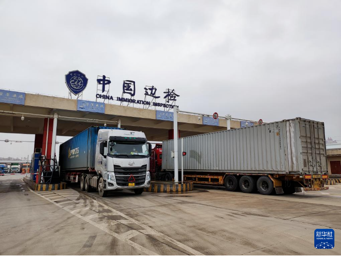 跨境货运车辆通过东兴口岸(二桥)的边防检查通道(2023年4月12日摄)。新华社记者 朱丽莉 摄