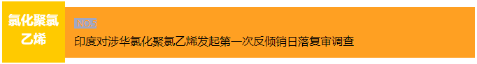 2023年12月29日,印度商工部发布公告称,应印度国内企业DCW Limited提交的申请,对原产于或进口自中国和韩国的氯化聚氯乙烯(Chlorinated Polyvinyl Chloride,简称CPVC)发起第一次反倾销日落复审调查。涉案产品的印度海关编码为39012110、39042190、39042210、39012290、39041090及39049000。本案倾销调查期为2022年7月1日至2023年6月30日(12个月),损害调查期为2019年至2020年、2020年至2021年、2021年4月至2022年6月以及倾销调查期。