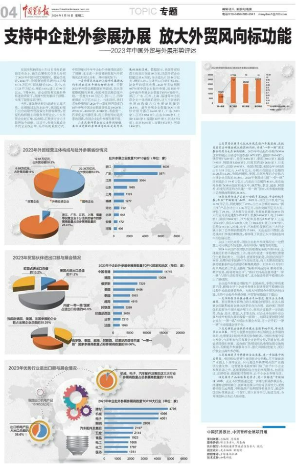 当然,能取得这样的成绩也实属不易。在刚刚过去的2023年,我国政府部门出台的稳外贸政策红利持续释放,贸促机构积极主动服务外贸企业,广大外贸企业赶订单、拓市场,汇聚多方合力才取得如今成绩。这其中,参展办展成为外贸企业找订单、拓市场的重要方式。中贸智库对今年中企赴外参展情况进行了调研,本文进一步将调研数据与外贸情况进行对比分析。具体情况如下: