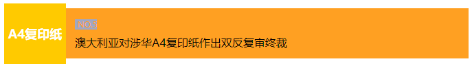 2024年2月26日,澳大利亚反倾销委员会发布公告称,澳大利亚工业科技部长通过了澳大利亚反倾销委员会对进口自对巴西、中国、印度尼西亚和泰国的每平方米70克重~100克重的A4复印纸(A4 copy paper)的反倾销以及对中国每平方米70克重~100克重的A4复印纸作出的反补贴复审终裁建议,决定撤销对上述国家涉案产品的现行反倾销措施和反补贴措施,措施自2023年5月5日起生效。