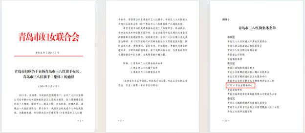 RCEP山东企业服务中心荣获“青岛市三八红旗集体”称号