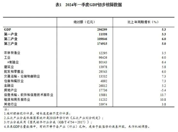 壹 / 2024年一季度国内生产总值初步核算结果公布