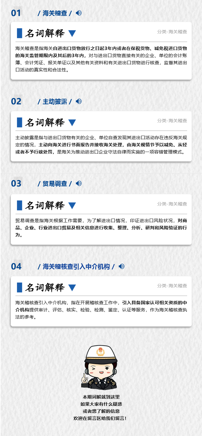 海关名词第7期 | 海关稽查、主动披露、贸易调查、海关稽核查引入中介机构