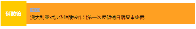2024年5月14日,澳大利亚反倾销委员会发布第2024/022号公告称,澳大利亚工业与科学部长(the Minster for Industry and Science)通过了澳大利亚反倾销委员会对进口自中国、瑞典和泰国的硝酸铵(Ammonium Nitrate)作出的第一次反倾销日落复审终裁,决定不再继续对上述国家的涉案产品实施反倾销措施。现行反倾销措施于2024年6月3日到期后终止。