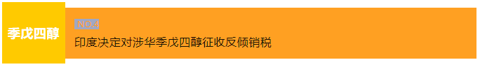 2024年5月16日,印度财政部税收局发布第08/2024-Customs(ADD)号通报称,接受印度商工部于2024年2月20日对原产于或进口自中国大陆、沙特阿拉伯及台湾地区的季戊四醇(Pentaerythritol)作出的反倾销终裁建议,决定对上述国家和地区的涉案产品征收为期5年的反倾销税,分别为中国大陆345.15美元/吨、沙特阿拉伯300.15美元/吨和台湾地区499.01美元/吨。涉案产品的印度海关编码为2905.42.90。该措施自本通报发布于官方公报之日起生效。